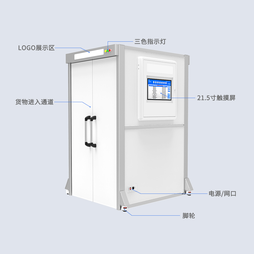 RFID识别通道机,专为出入库批量物品盘存管理设计,快速读取RFID标签,设备为双开门款式,可对出入库物品进行封闭读取,防止串读周围标签,节省人力,加速进出库。