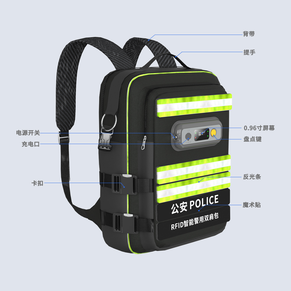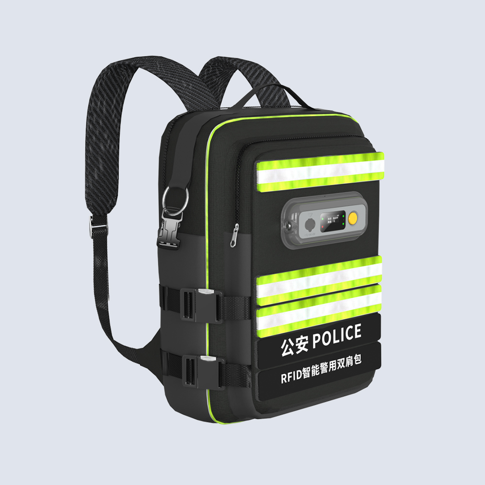 智能警用背包集成超高频RFID读写模块,实现警用装备自动盘点与遗漏报警功能。采用人体工学双模设计,支持背负/手提,内置模块化隔层分区存储装备,外部配置高辨识度警用反光标识及可定制POLICE字样,具备阻燃、防雨淋、防尘性能,适配复杂执法场景。