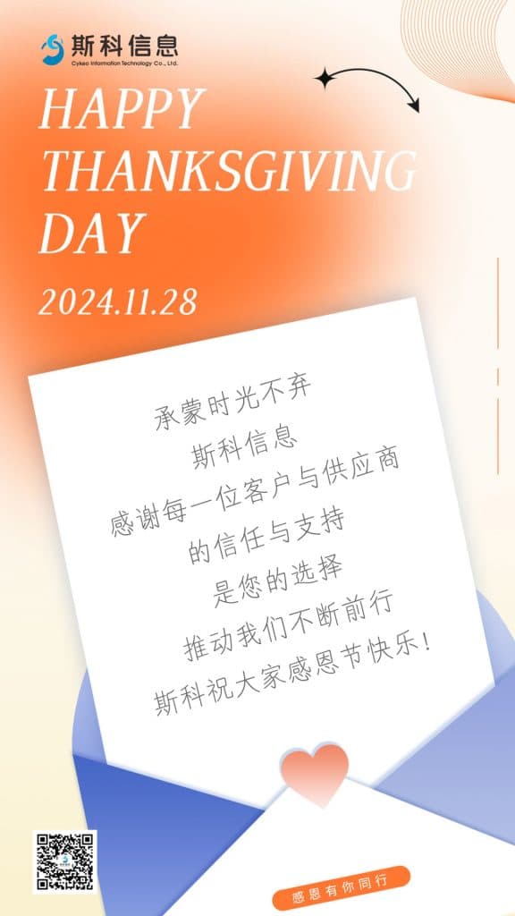 感謝客戶選擇斯科(Cykeo),給予我們信任與支持。正是您的每一次選擇,讓我們在發(fā)展的道路上不斷前行;正是您的每一次反饋,讓我們在服務(wù)的細(xì)節(jié)上不斷精進(jìn)。在未來的日子里,我們將繼續(xù)秉承“創(chuàng)新變革、成就美好”的理念,為大家提供更加優(yōu)質(zhì)的產(chǎn)品與服務(wù),不負(fù)您的選擇與信賴。