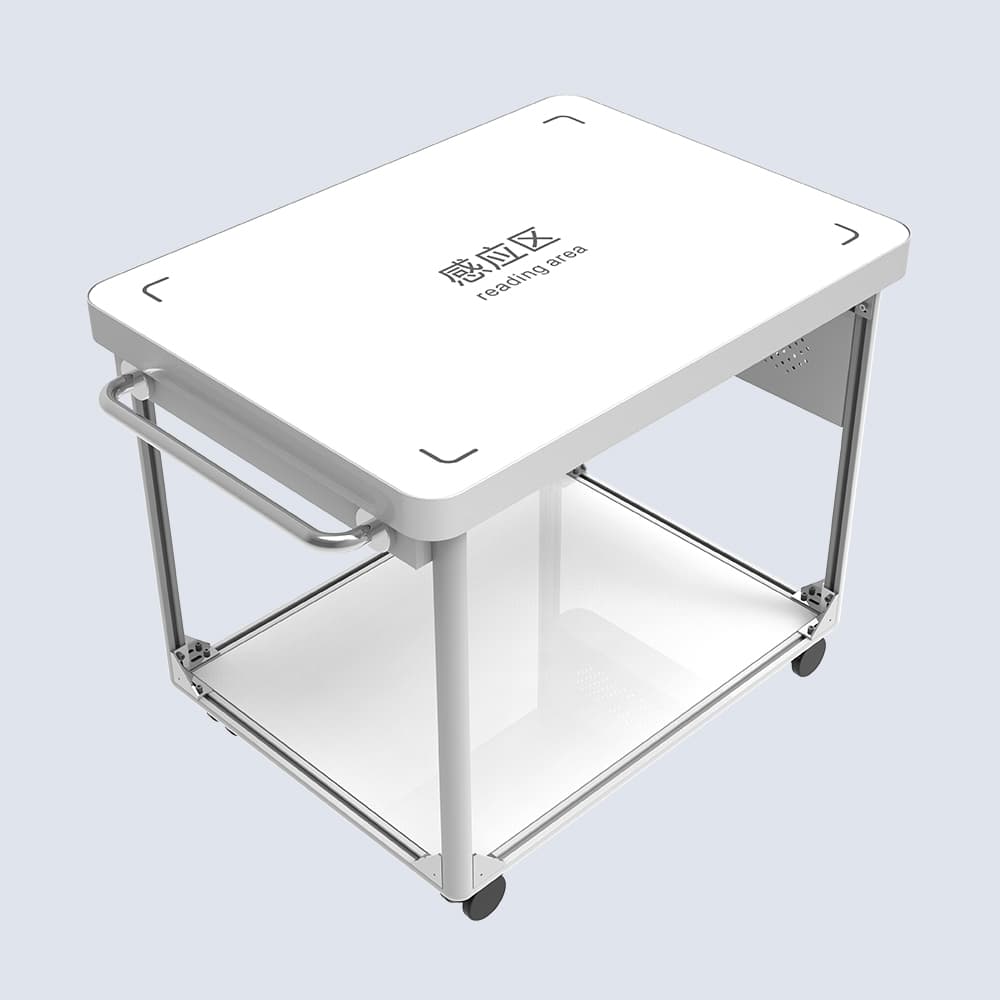 RFID移动识别台,搭载超高频RFID技术,集成读写器与天线,串口连接电脑,实现物品快速移交接收,精准识别种类数量,配备存放空间,助力批量物品高效管理与迁移。