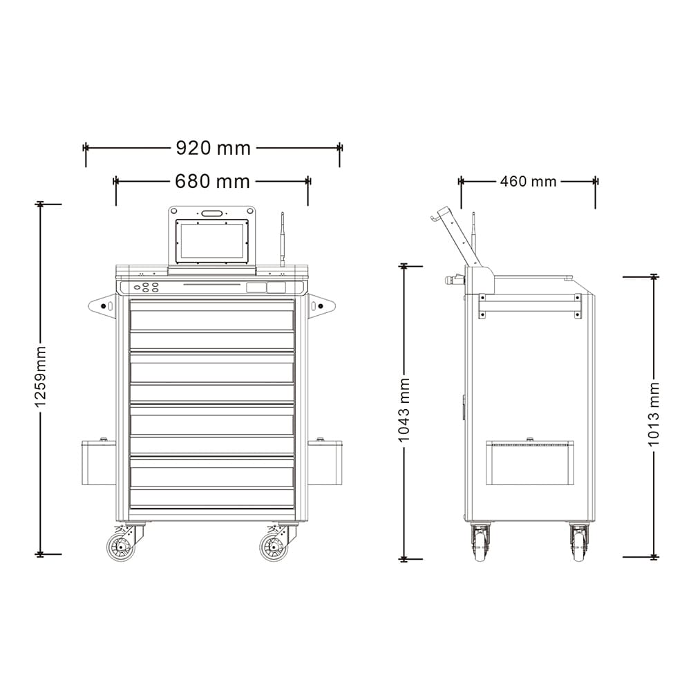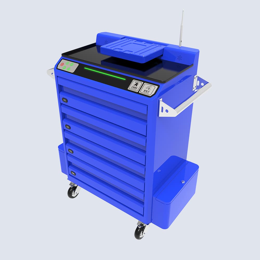 工业RFID工具推车自动管理带RFID标签的工具,记录取还细节,包括人员、岗位、时间等,可设权限,逾期未还自动警告,助力企业信息化管理和航空业FOD精细控制。